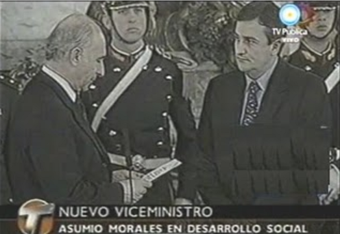 Gerardo Morales, docente y contador, fue viceministro de Desarrollo Social en el último gobierno de De la Rúa. Se fueron con 39 muertos y en helicóptero. También formó parte de aquel gabinete como ministro de Trabajo, Patricia Bullrich Luro Pueyrredón, quien le descontó, a pedido de Cavallo, el 13% a los jubilados.