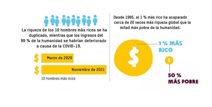 Durante el mismo período, la riqueza acumulada de cerca de 5000 millones de personas a nivel global se ha reducido. Las penurias y el hambre son una realidad cotidiana para muchas personas alrededor del mundo”