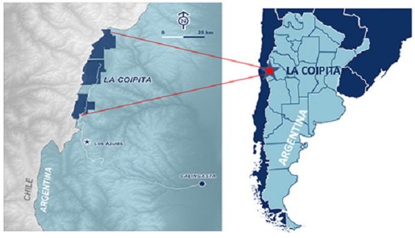 La Coipita está en una zona cercana al límite con Chile a más de 4.000 metros sobre el nivel del mar y abarca un área de 70.000 hectáreas. Está ubicado en el departamento de Calingasta, en la provincia de San Juan, en un entorno geológico similar a proyectos de clase mundial, como son los desarrollos adyacentes Filo del Sol y Los Azules.